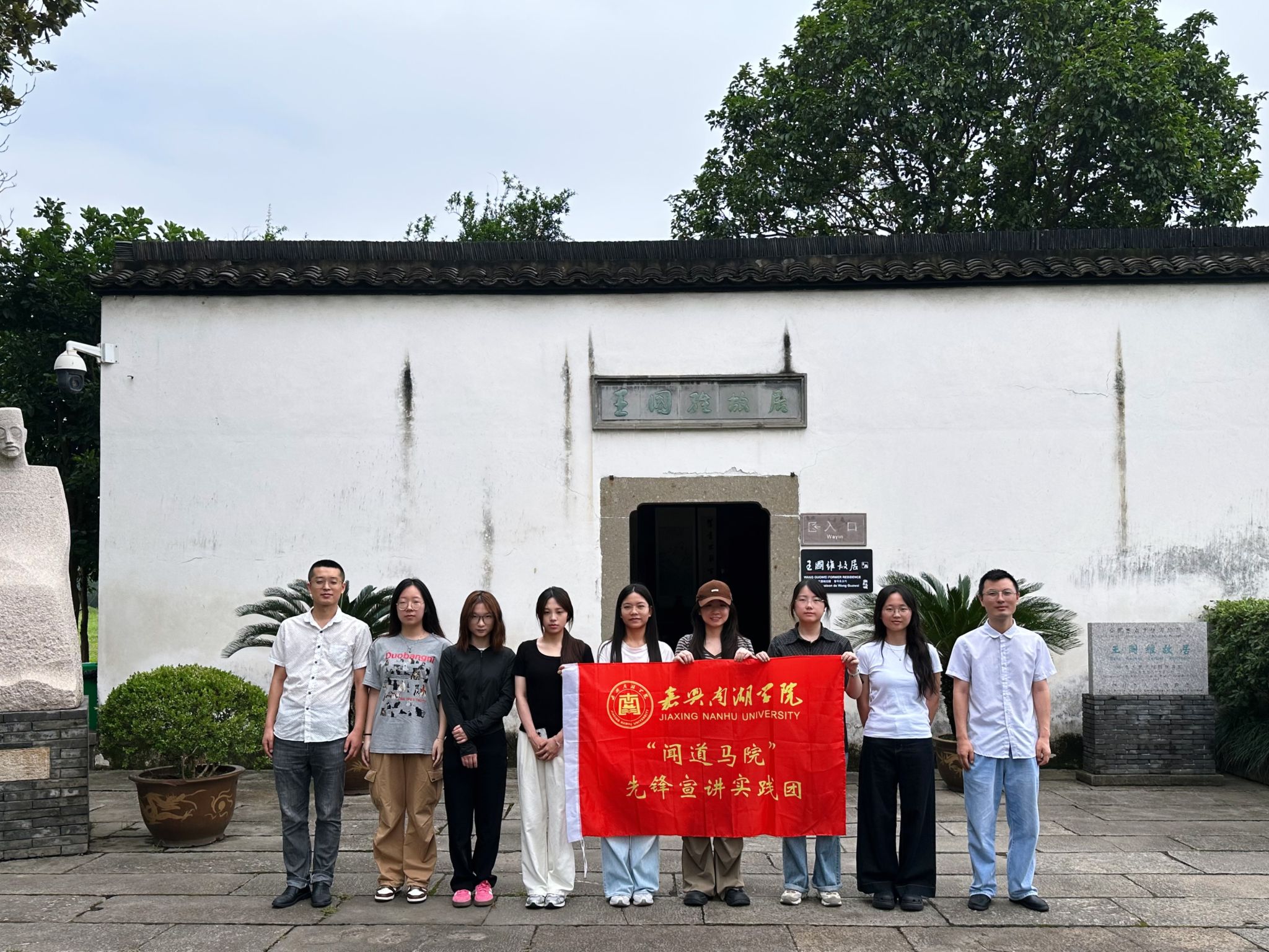 在这里,实践团成员们真切感受到:王国维的教育思想并未随岁月远去,而似那源头活水,正悄然注入当代思政教育的血脉,将在嘉禾名人的文化长风与新时代的浩荡浪潮交汇之处,再度涌绿,长出生机。