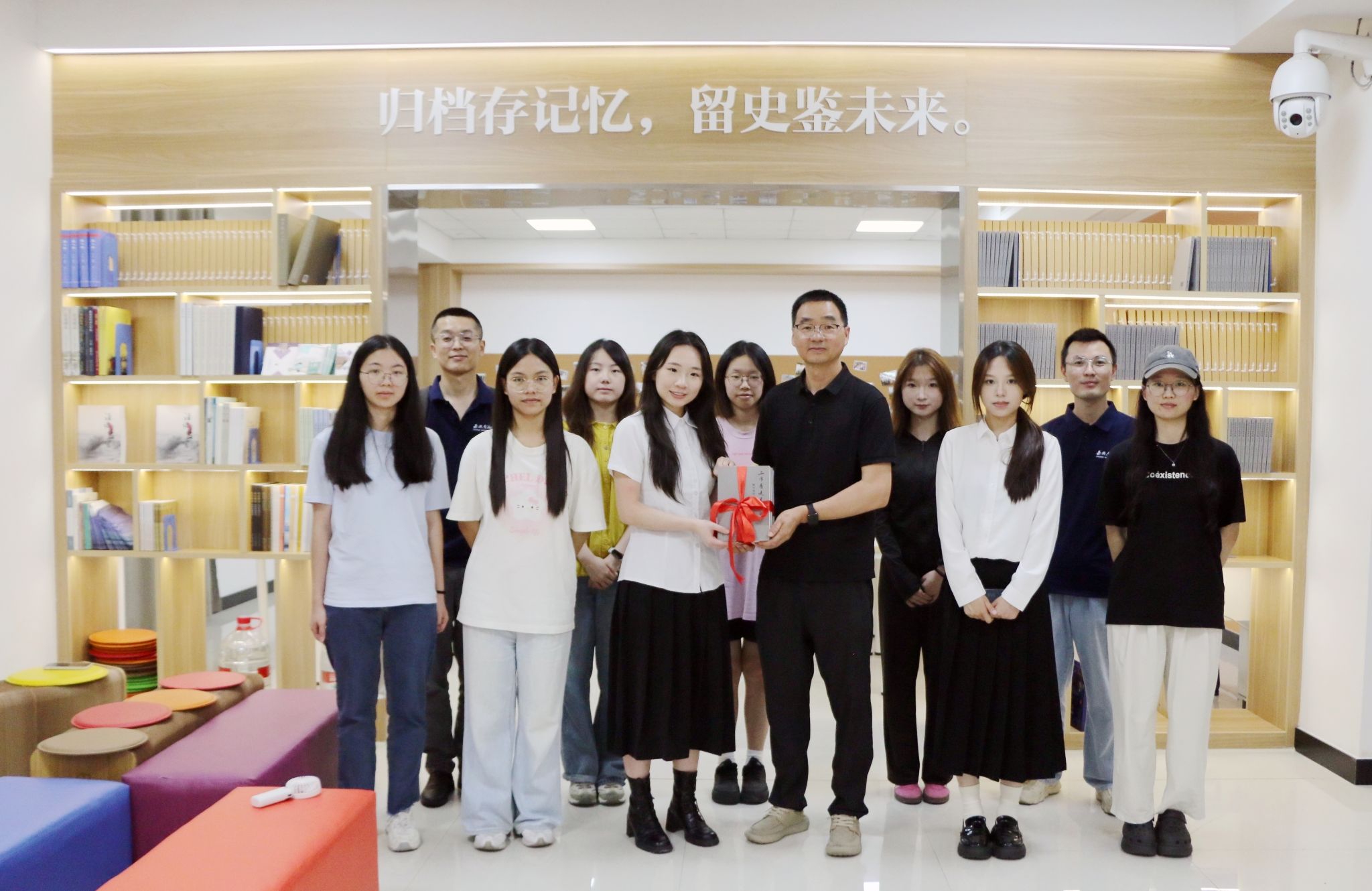 此外,实践团成员们还探寻了有关王国维的实体档案与数字化数据库。在档案馆科长朱薇薇的带领下,实践团成员们查阅了馆内珍藏的王国维学术著作手稿、往来书信等,进一步了解到王国维的学术思想和人生轨迹。活动尾声,海宁市档案馆向实践团赠送了“潮乡红色名人”系列丛书,助力团队让沉睡的档案成为行走的思政课堂。