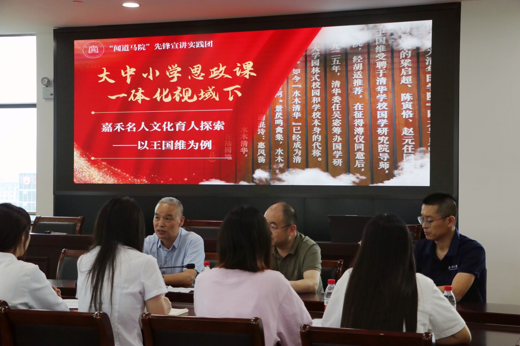 6月23日,实践团前往海宁市档案馆、海宁市文联王国维研究会,开展“大中小学思政课一体化视域下嘉禾名人文化育人探索——以王国维为例”专题交流活动。王国维研究会会长刘培良、王国维研究会秘书长汪红杰以及海宁市档案馆服务科科长朱薇薇与实践团成员们共同就名人(王国维)文化与思政教育的融合路径进行了深入探讨。